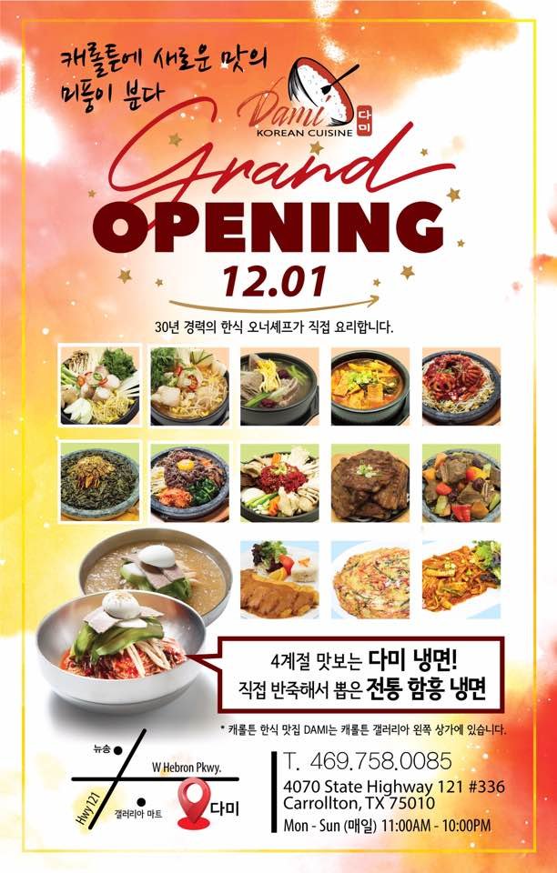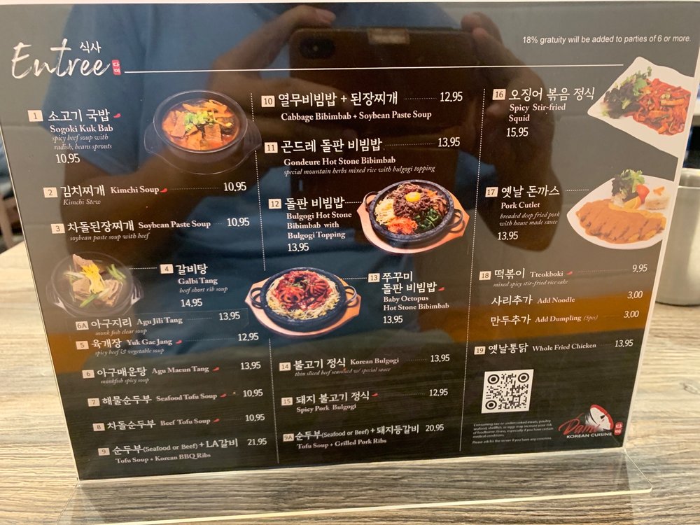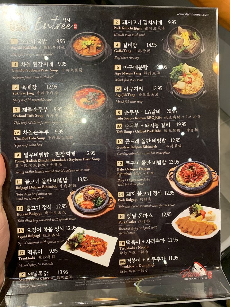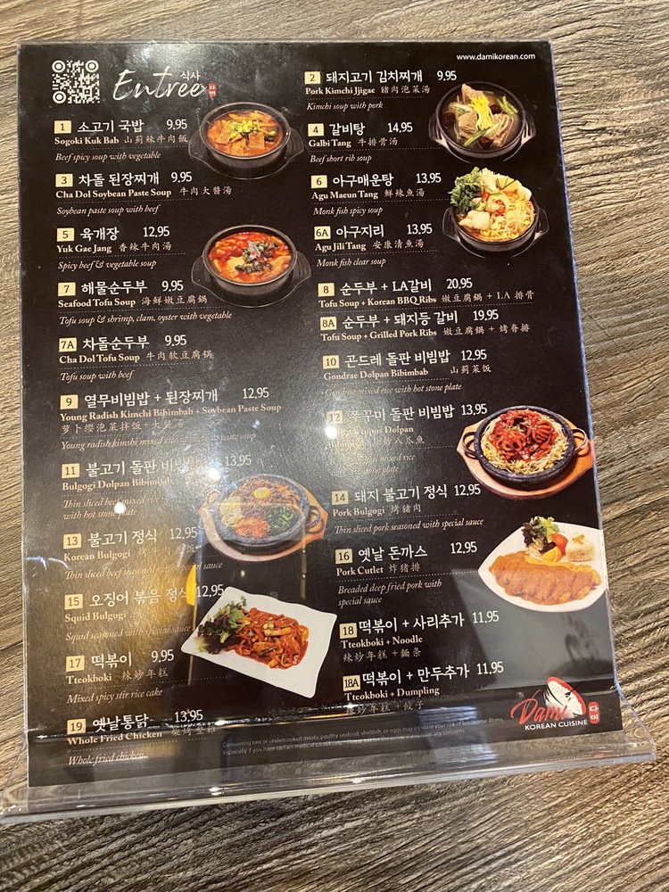 Dami is a Korean restaurant in Carrollton, TX that offers delivery and takeout. With moderate noise levels and waiter service, Dami provides a cozy dining experience. Customers rave about the friendly service and fresh, flavorful food. Standout dishes include the Beef Bibimbap, Galbijjim, Seafood Pancake, Spicy Galbi Jjim, and Skate Fish Jjim. The handmade cold noodles and kimchi jigae soup are also customer favorites. The banchan are delicious, and the complimentary soup is full of flavor. The portions are generous, and the meat dishes are cooked to perfection. Overall, Dami is a charming mom and pop shop with a warm atmosphere and delectable Korean cuisine.
